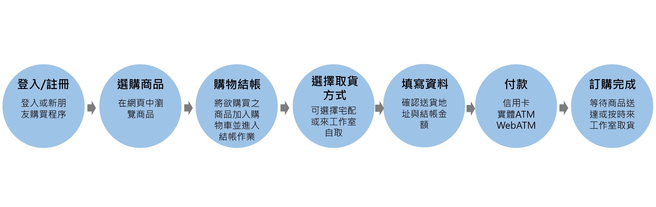 填寫正確詳細的收件者與付款方式,並在欄位中選擇需"宅配到府"或來"工作室自取"。再選擇到貨或取貨日期。